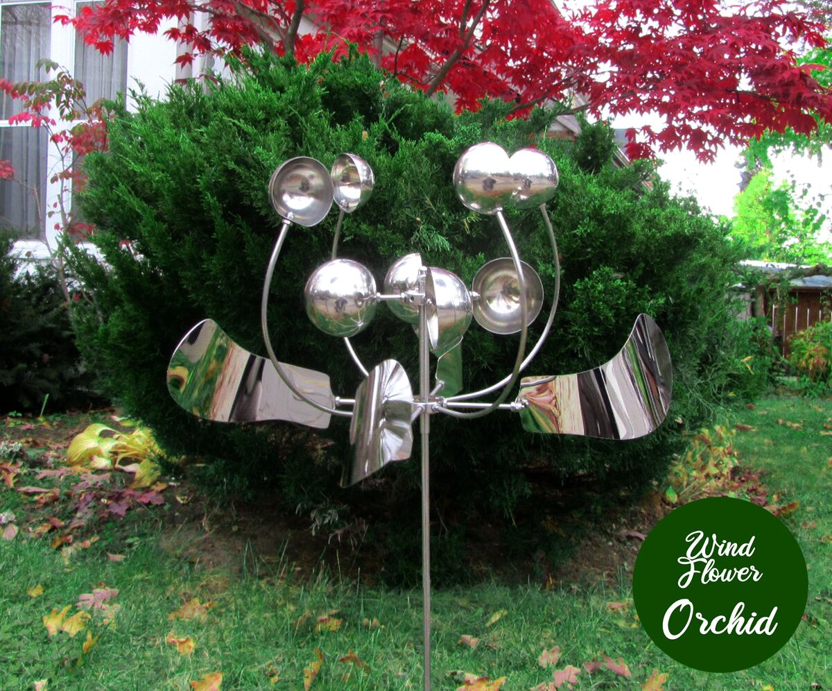 Wind Spinner Orchid , Kinetic Wind Spinner, Garden Art, Outdoor Décor, Stainless Steel Sculpture, Modern Art Garden Gift, Unique Garden Decoration