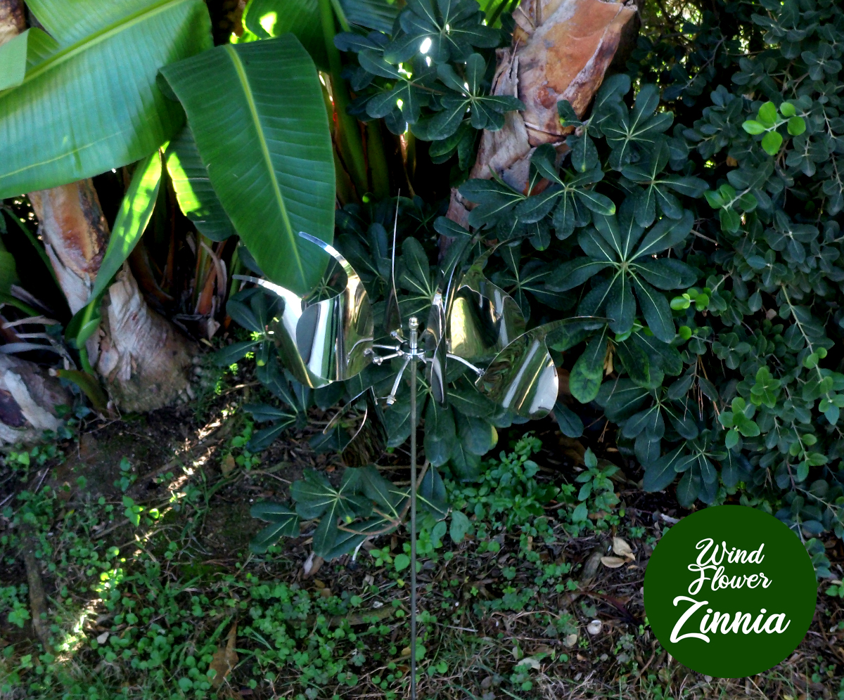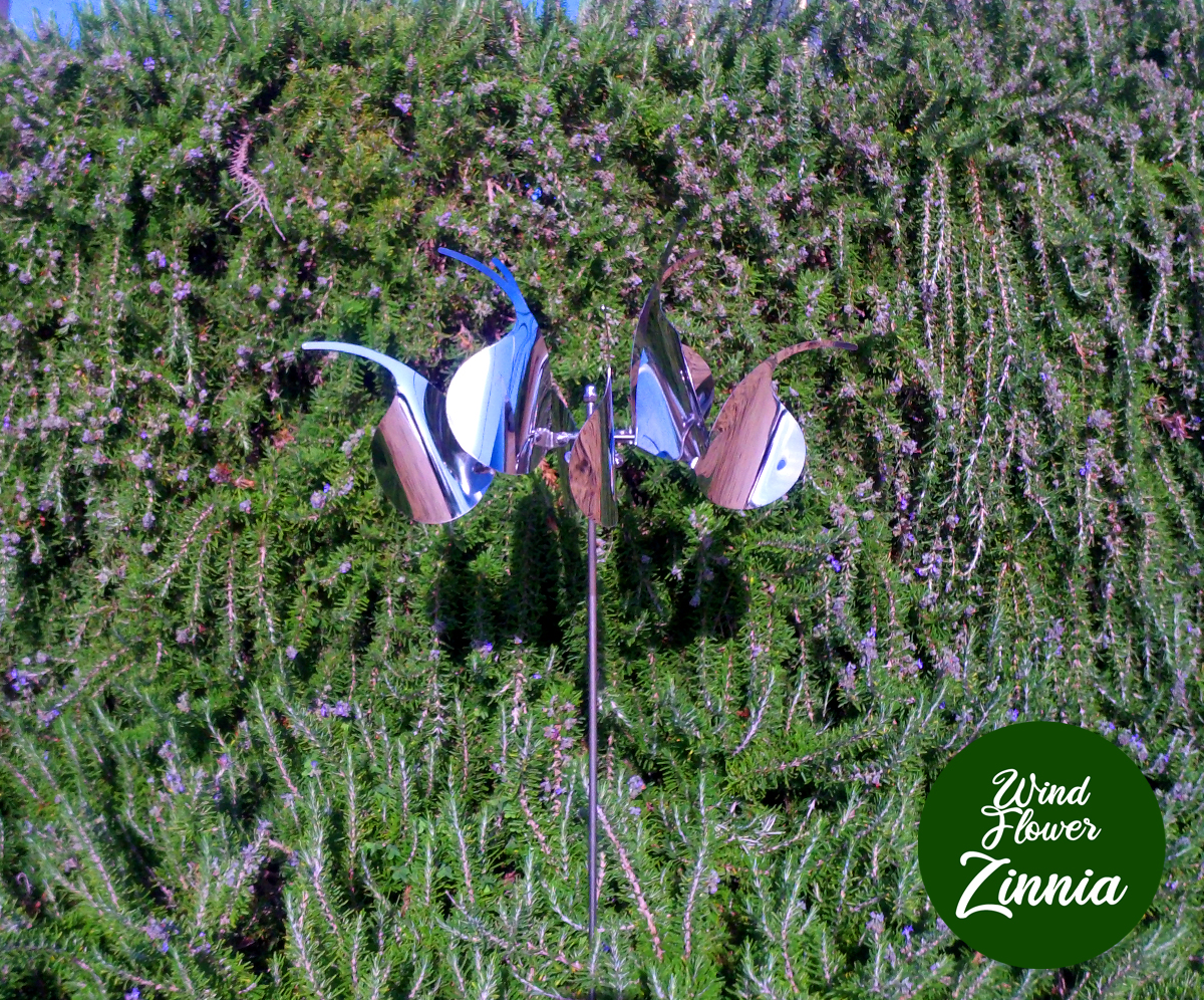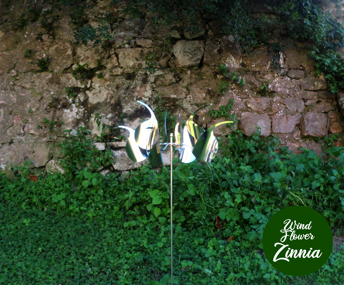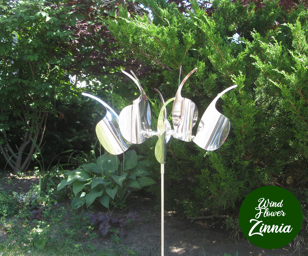 The Wind Flower Zinnia spins effortlessly with even the slightest gust of wind, creating a mesmerizing display of movement and light. Push it into the ground and position it vertically for a striking garden centerpiece. For a versatile touch, it can also be converted into a kinetic wind spinner to hang from a tree or a cornice.